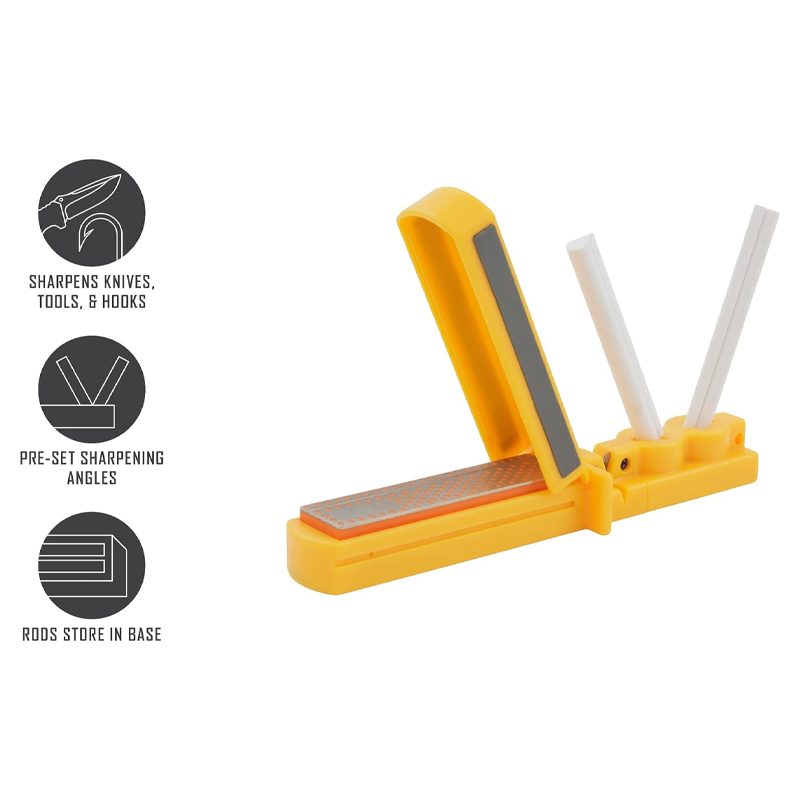 3-in-1 Sharpening System – Yellow – Ceramic Rods – Diamond Stone – Protective Lid – Easy Storage – Knife & Tool Sharpener – Portable